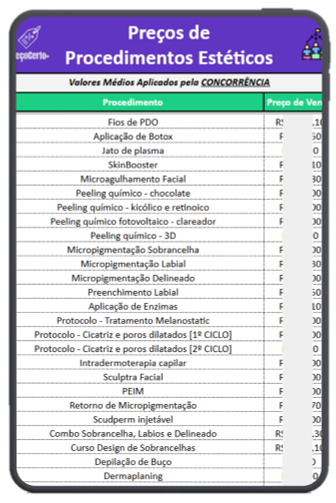 ⚙️ Descubra os valores de cada procedimento do mercado, e ajuste os seus sem medo de se desvalorizar.